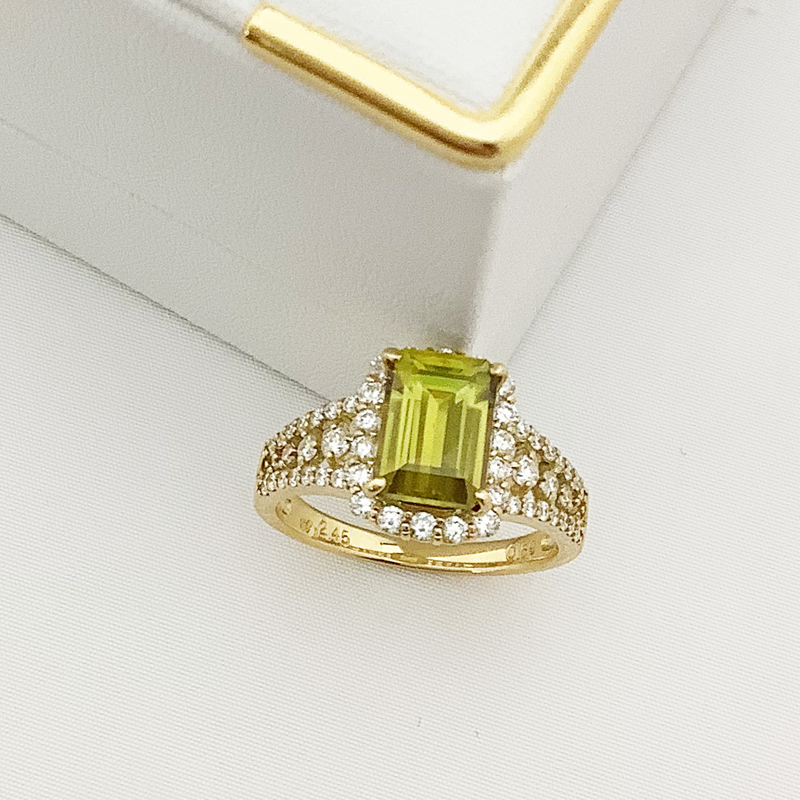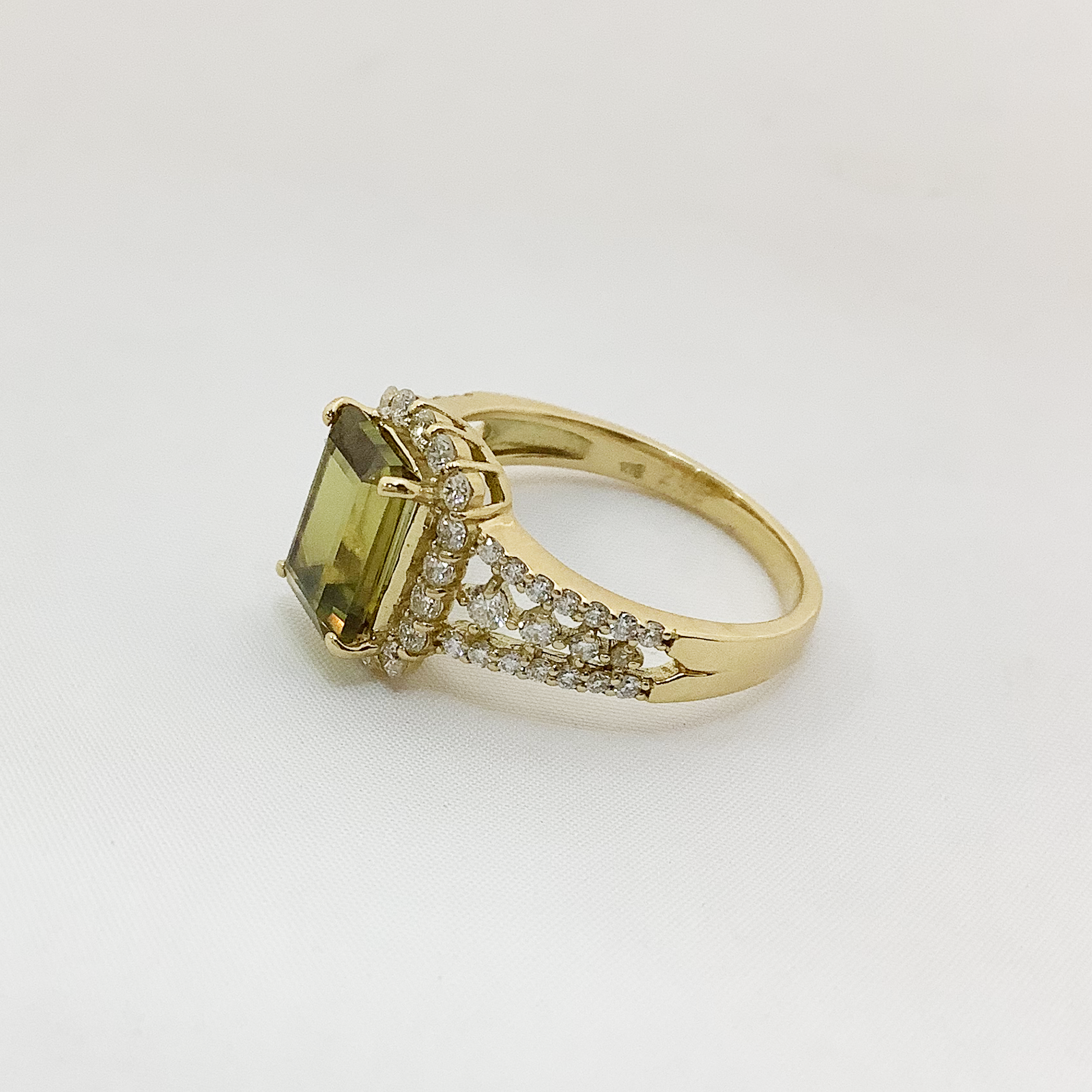そのスフェーンの輝きに寄り添うように周囲をダイヤで縁取りをした贅沢で美しいリングです。
