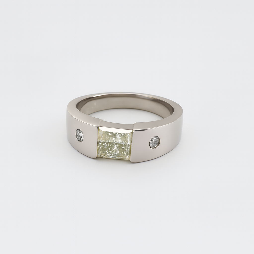 プリンセスカットとは、上から見ると正方形、横から見るとピラミッドのような形をしたダイヤモンドのカット方法で、