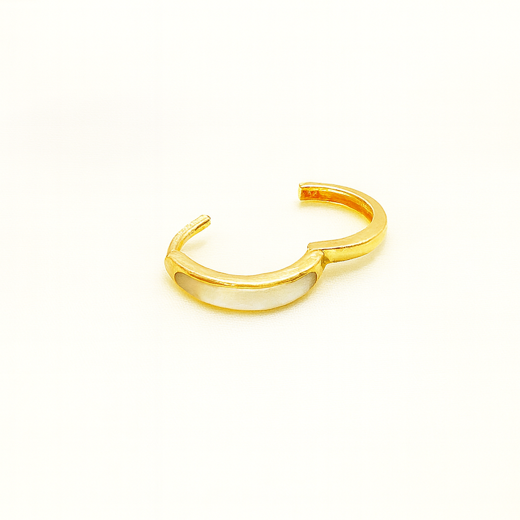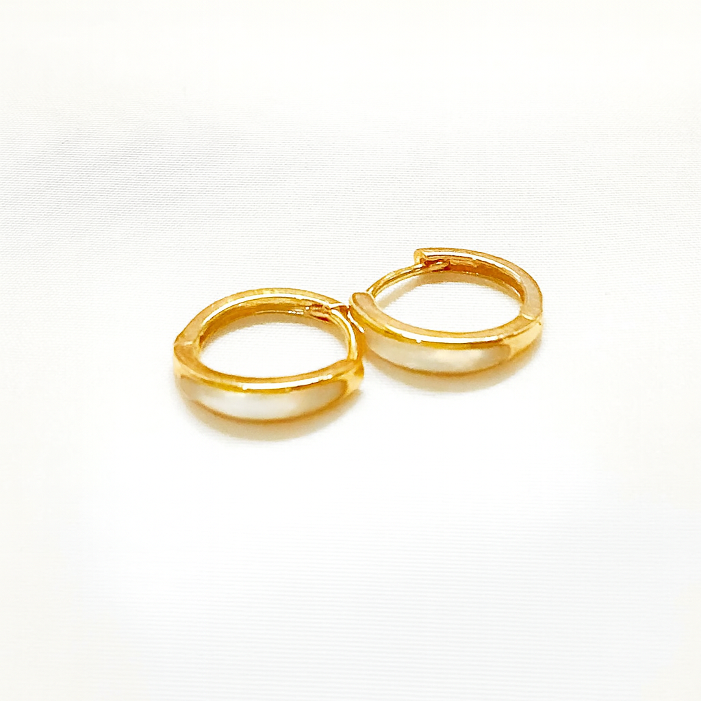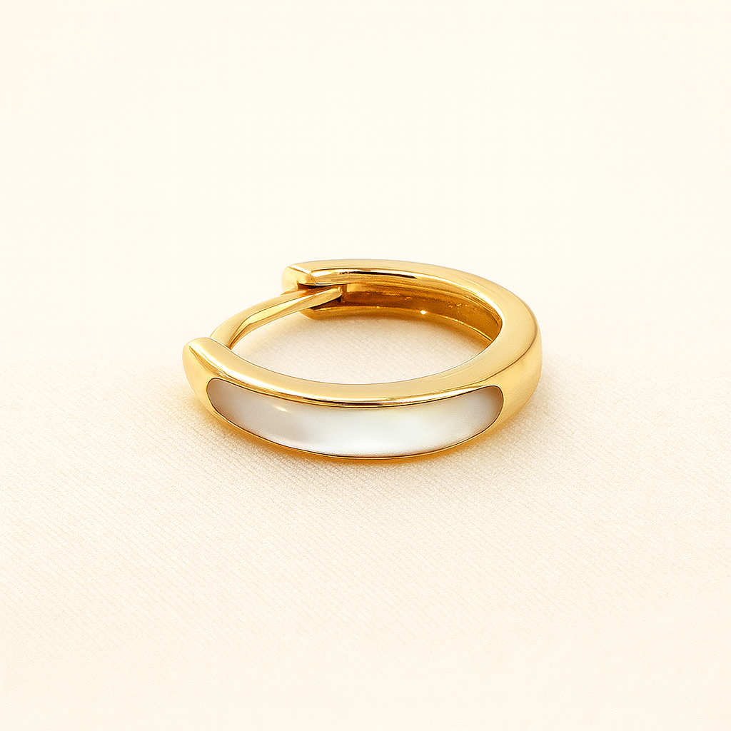 K10ゴールドが描くしなやかな輪郭とシェルの淡く揺らめく輝きが見事にマッチしたピアス。