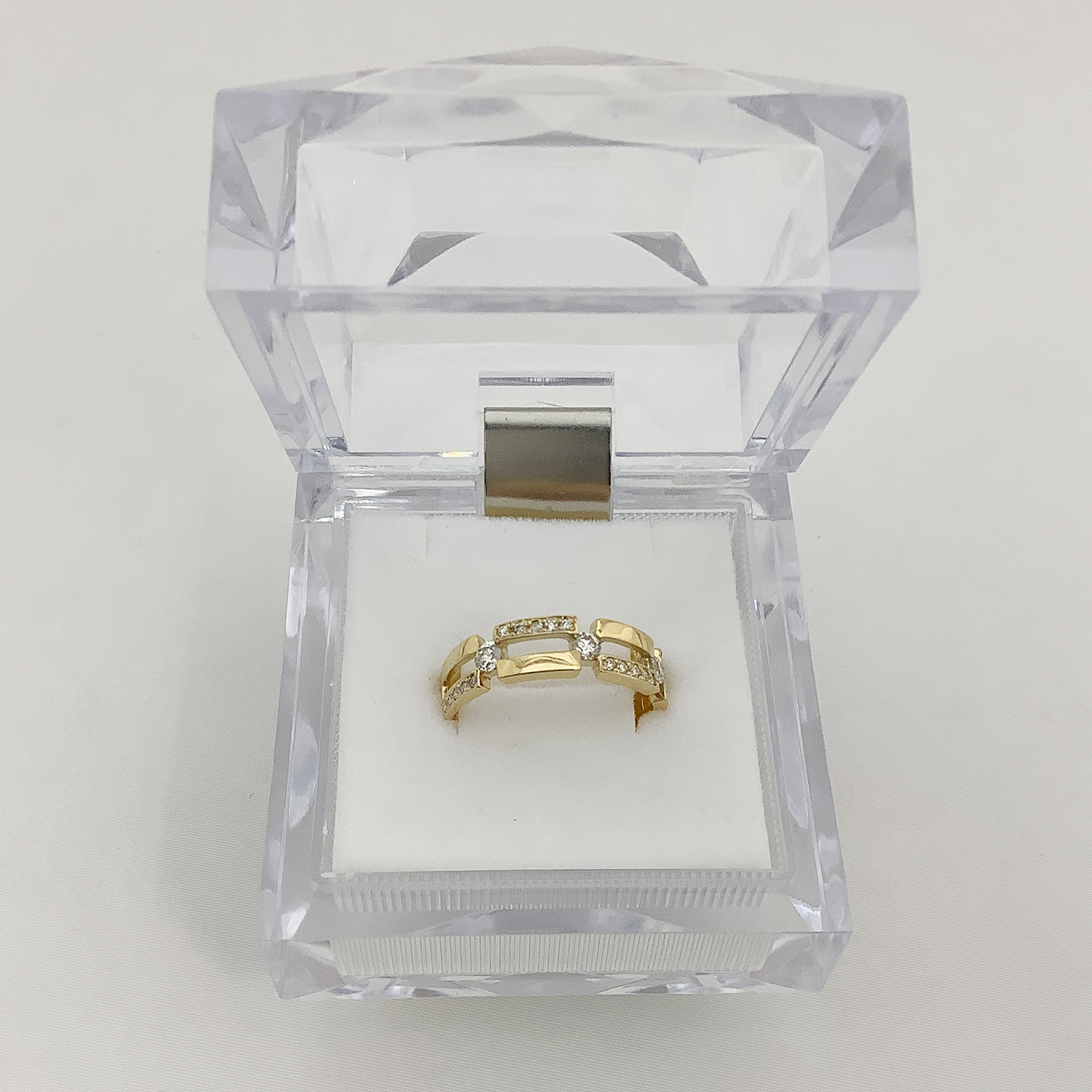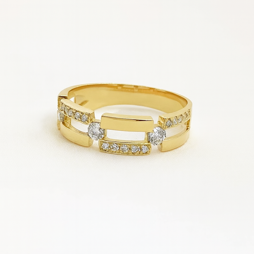 抜け感のある中央部が、モダンで知的な印象を際立たせるリングです。