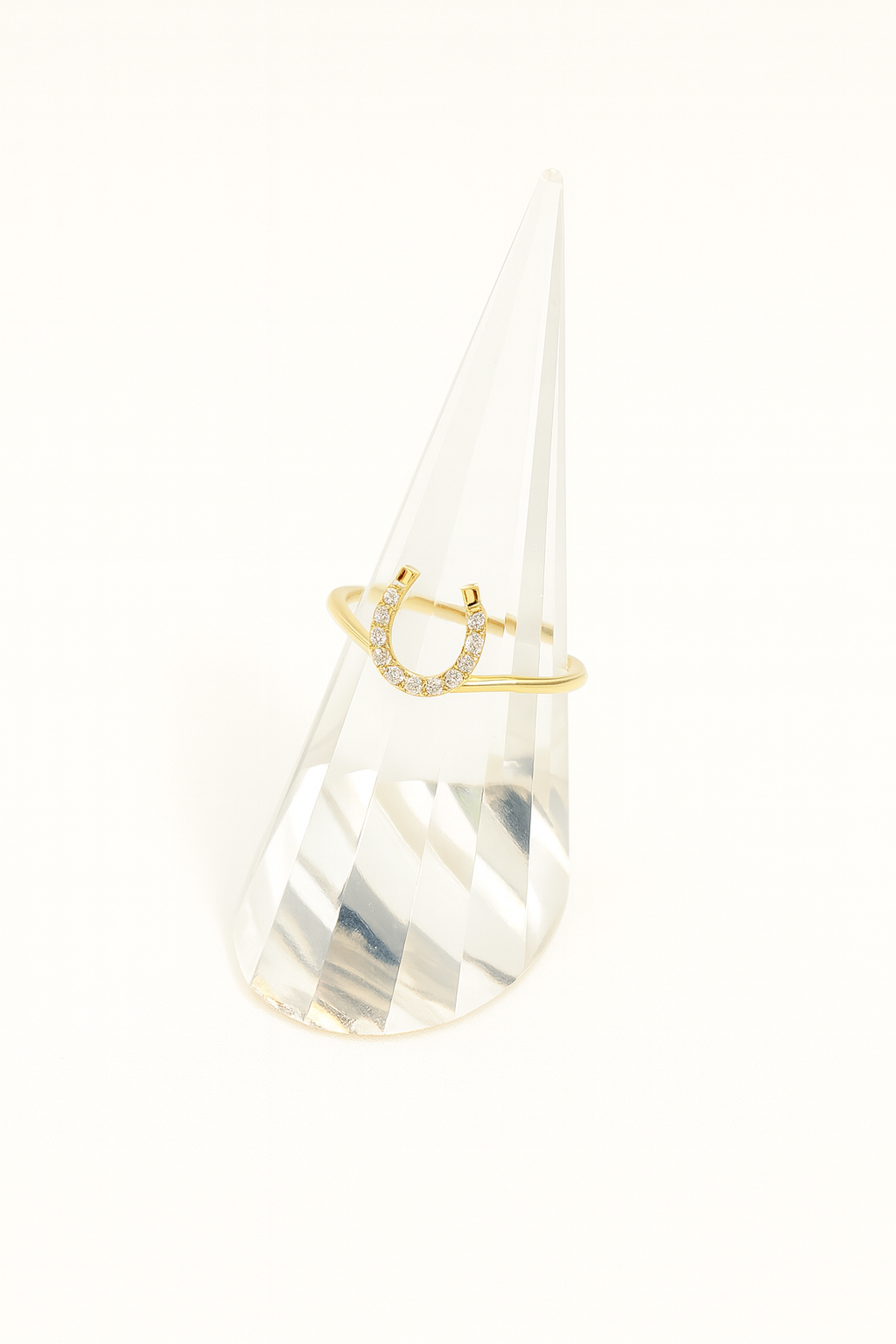 華奢な細身のアームだからこそ、指にそっと馴染み馬蹄の輝きが
