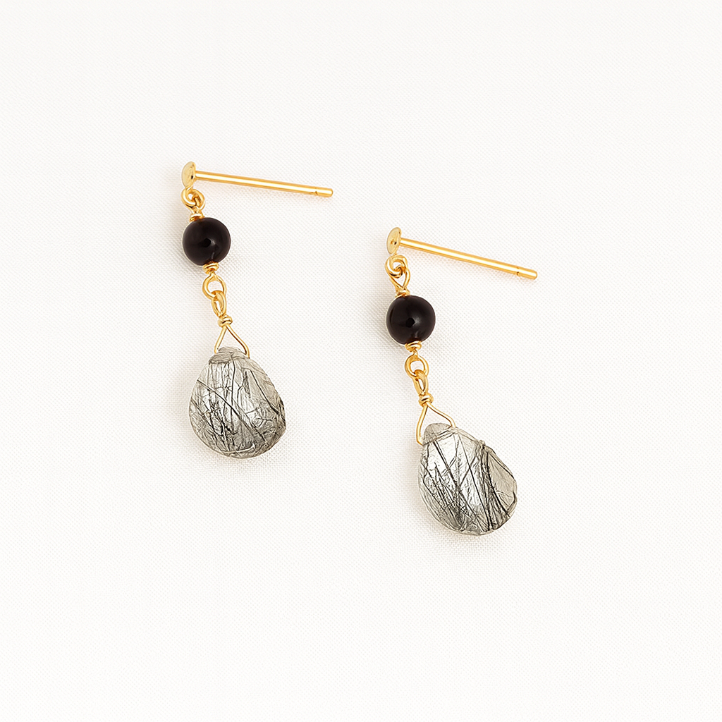 K18 BLACKルチル/オニキス ピアス