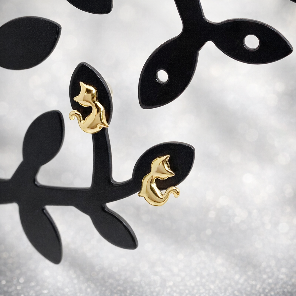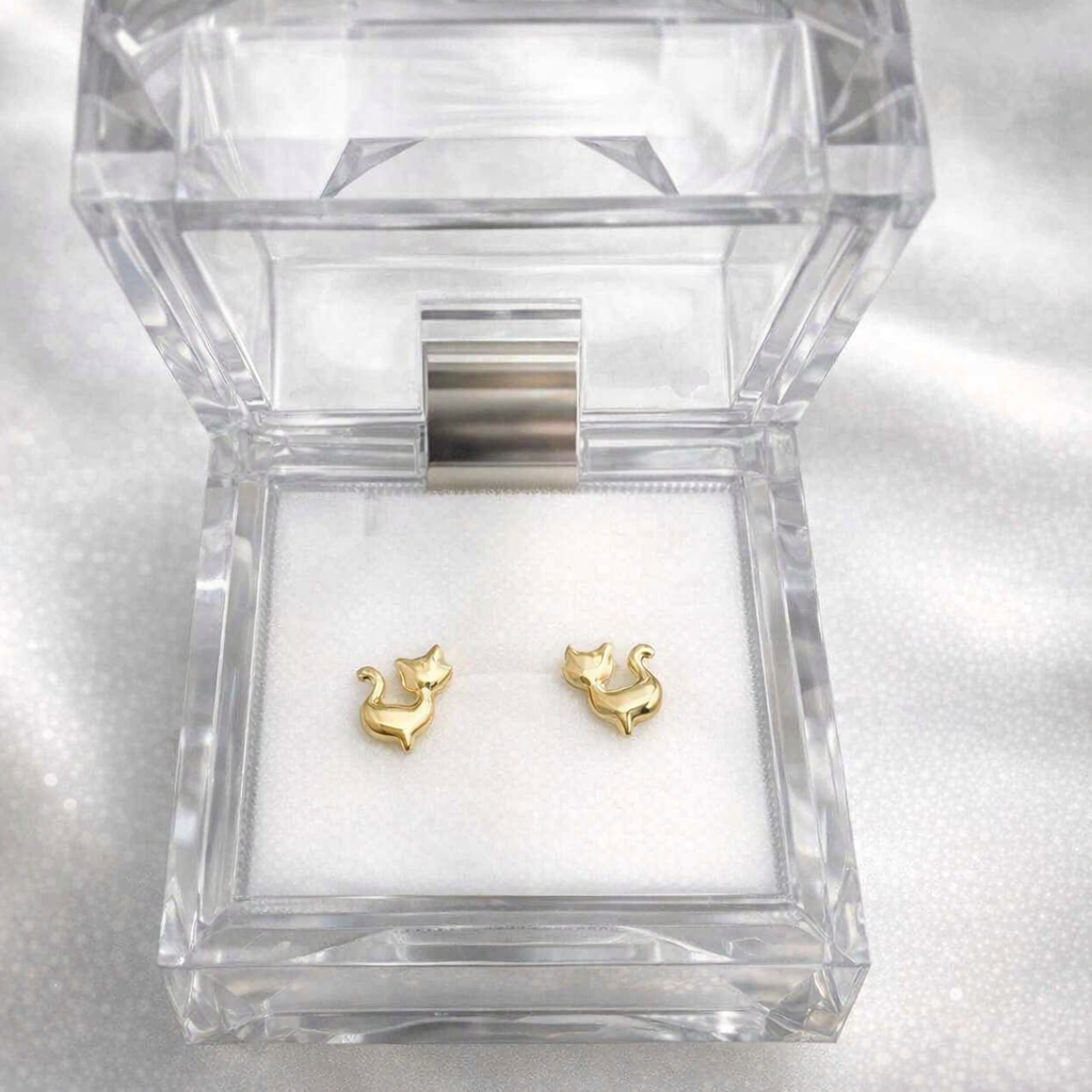 猫のしなやかさと、18金の確かな美しさが響き合うピアスです
