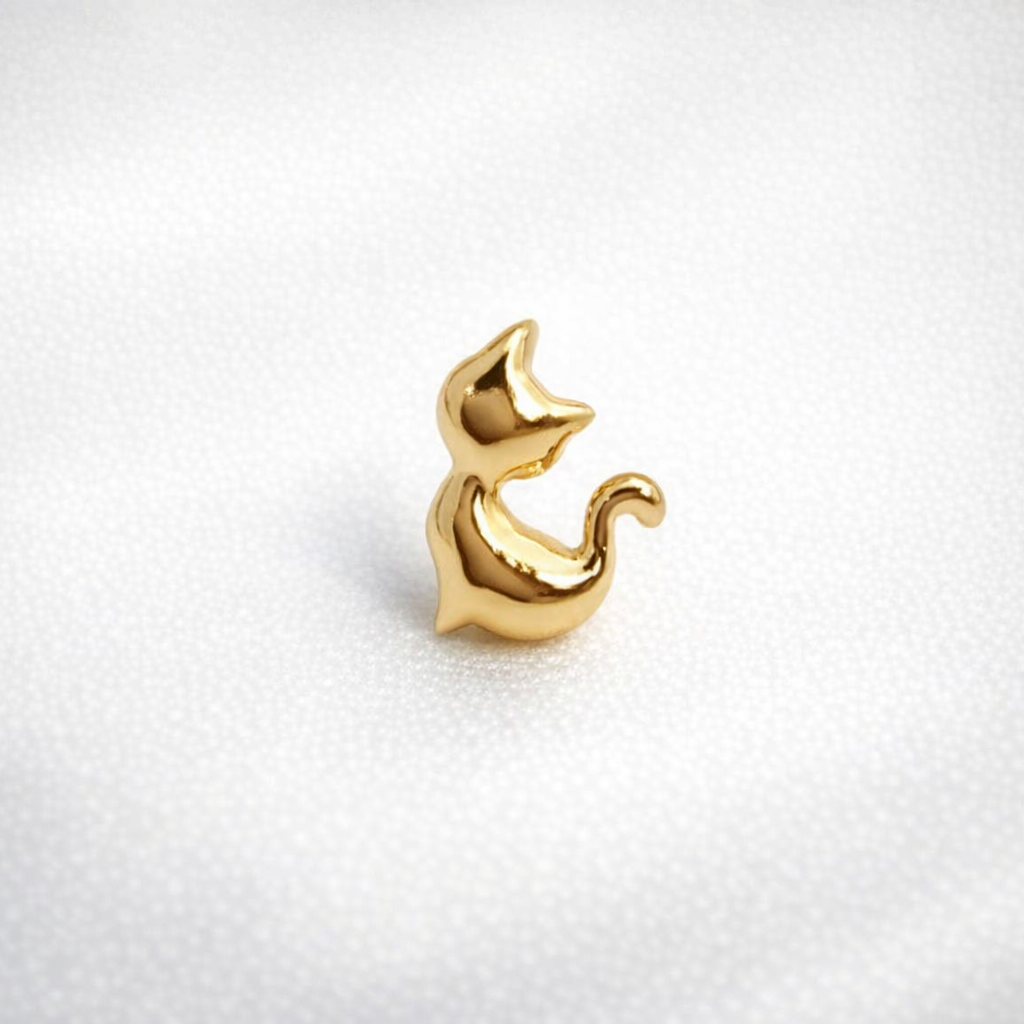 18金の艶が描く、ミニマルな猫のシルエット。